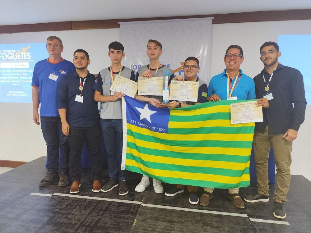 Estudantes do Centro Estadual de Tempo Integral (Ceti) Darcy Ribeiro, de Bom Princípio do Piauí; do Ceti Otávio Falcão, de Porto-PI; e Ceti Adalberto Correia Lima, de Olho D'água do Piauí, conquistaram medalhas de ouro e prata, respectivamente, na 54ª Jornada de Foguetes, realizada entre os dias 30 de setembro e 3 de outubro, em Barra do Piraí, no Rio de Janeiro.